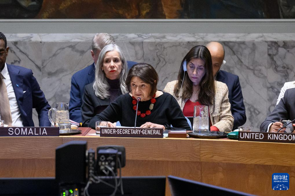 1月5日,在位于紐約的聯(lián)合國總部,聯(lián)合國副秘書長迪卡洛宣讀聯(lián)合國秘書長古特雷斯的講話。新華社發(fā)(聯(lián)合國供圖/洛伊·費利佩攝)
