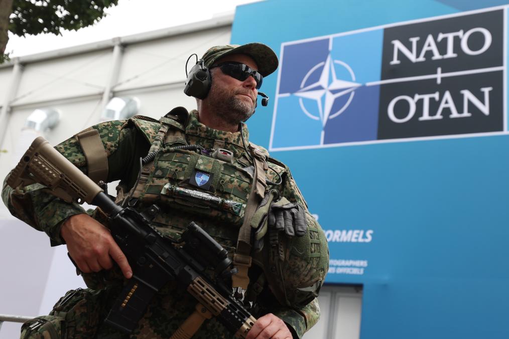 2025年6月24日,在荷蘭海牙,安保人員在北約峰會(huì)現(xiàn)場(chǎng)警戒。新華社記者趙丁喆攝