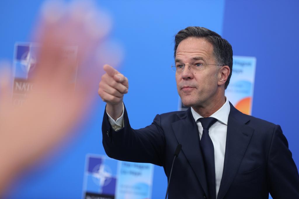 2025年6月25日,在荷蘭海牙,北約秘書長(zhǎng)呂特在北約峰會(huì)期間對(duì)媒體記者講話。新華社記者 趙丁喆 攝