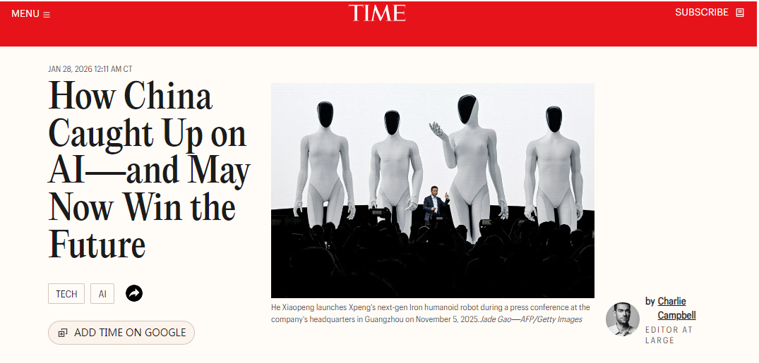 美國《時(shí)代》周刊28日發(fā)表題為《中國AI如何實(shí)現(xiàn)彎道超車 并可能贏得未來》的專欄文章。
