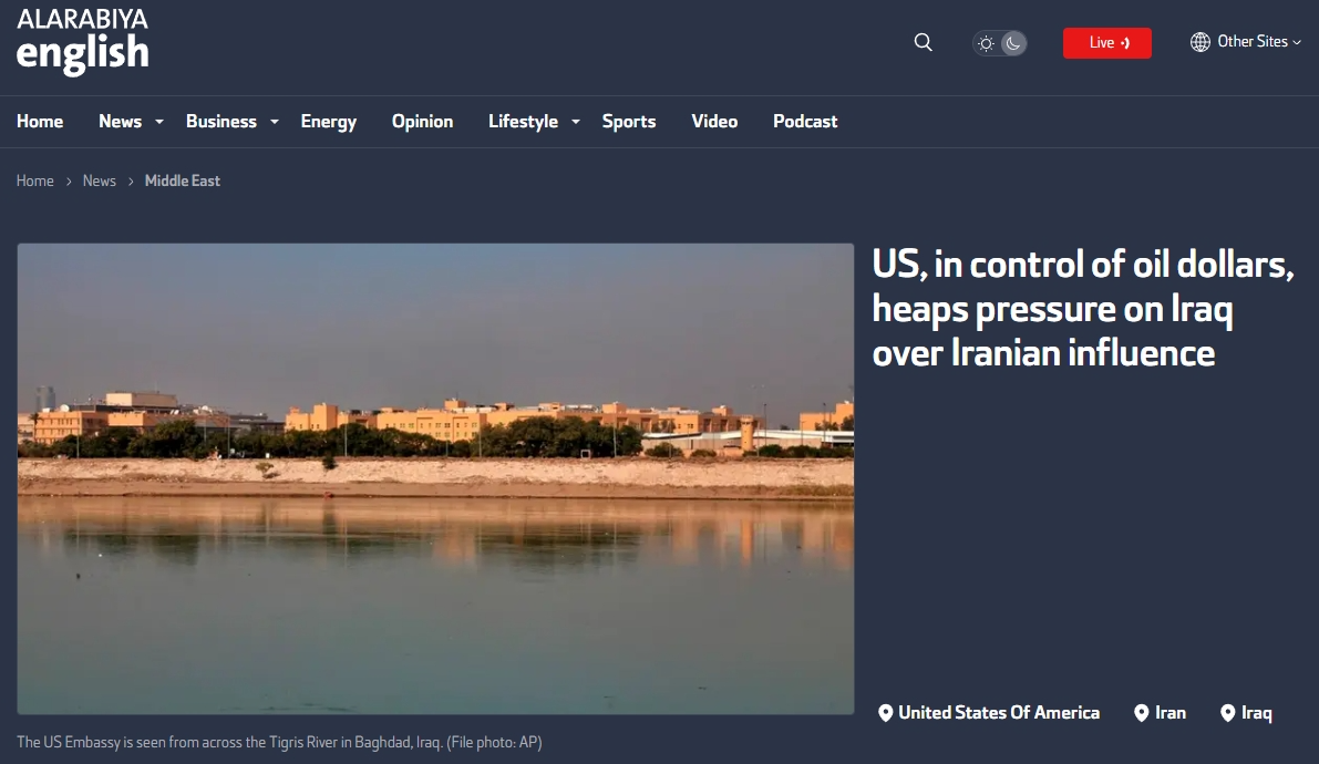 據(jù)多家媒體日前報道,當(dāng)伊拉克政府要求美軍在2020年撤離伊拉克時,美國就曾威脅要切斷伊拉克獲得石油收入的渠道,當(dāng)時伊方被迫作出了讓步。如今,美國又因?yàn)橐晾实囊蛩赝{制裁伊拉克,其中就包括“通過紐約聯(lián)邦儲備銀行獲得的重要石油收入”。