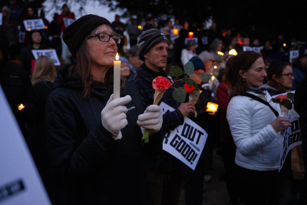 2026年1月25日,在美國(guó)加利福尼亞州舊金山,人們?yōu)閬啔v克斯·普雷蒂舉行燭光悼念活動(dòng)。新華社發(fā)(朱子于攝)
