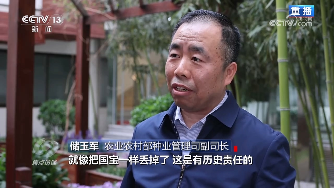 農(nóng)業(yè)農(nóng)村部種業(yè)管理司副司長儲玉軍:“國家?guī)焓菄仄?,種質資源安全黨中央國務院高度重視,如果不及時收集,喪失掉,就像把國寶丟掉了,這是有歷史責任的,所以早一天抓,早一天見效,早一天把它放在庫里才能安心。要把種源安全提升到關系國家安全的戰(zhàn)略高度,抓好種業(yè)振興,服務保障國家糧食安全。”