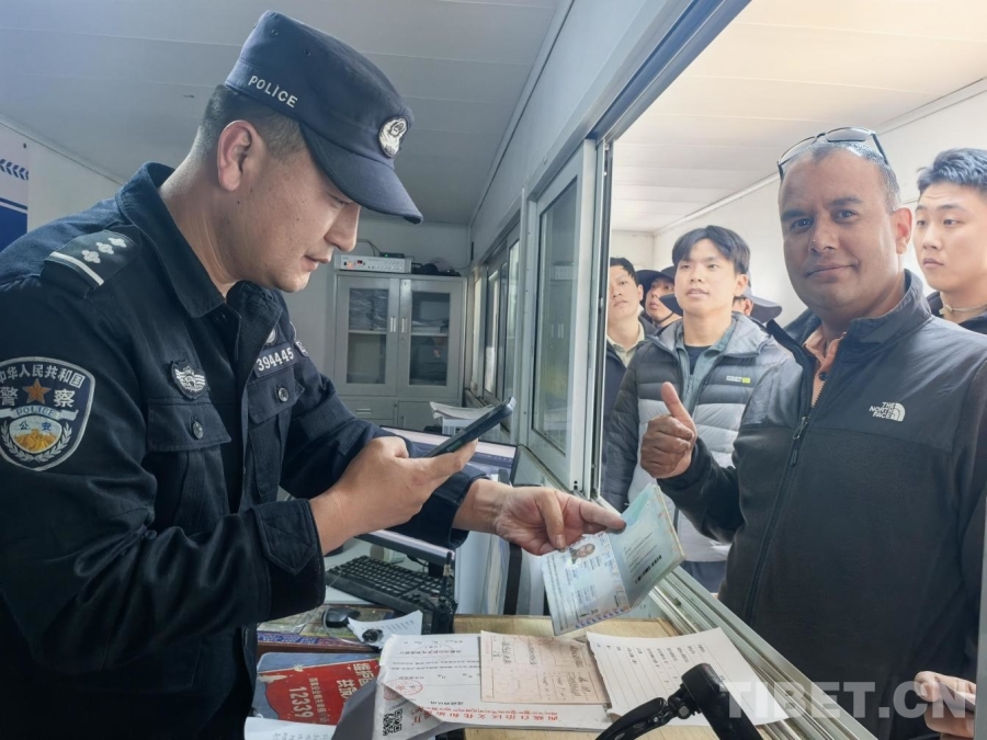 圖為珠峰邊境派出所民警查驗境外游客信息