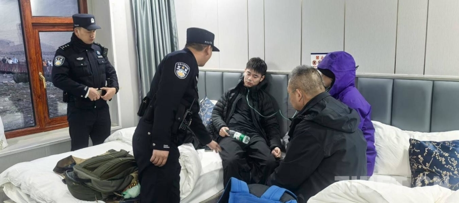 圖為珠峰邊境派出所民警為游客提供救助服務(wù)