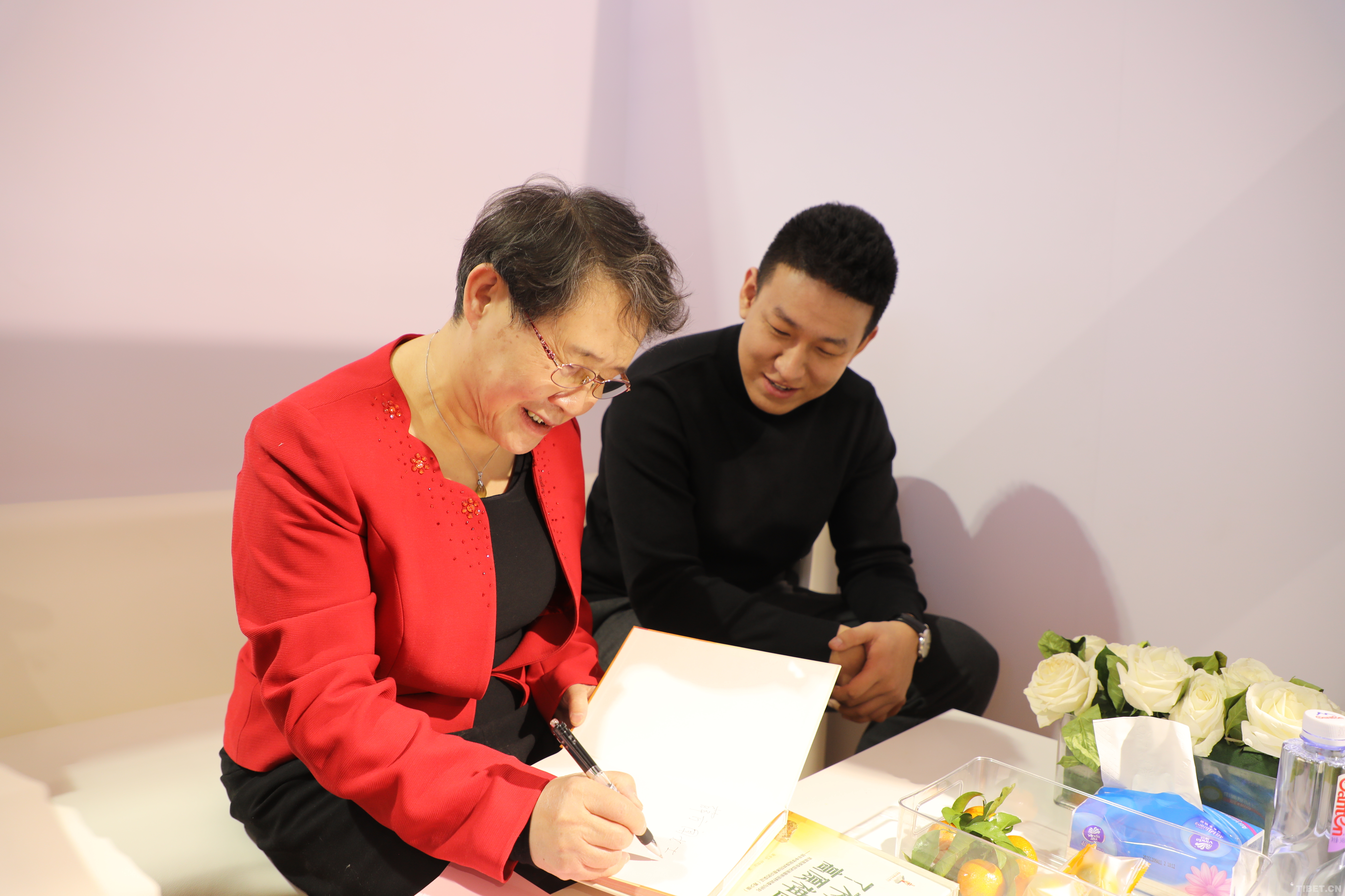 圖為《了不起的高原神畫》作者張亞莎(左)和任潤良(右) 攝影:王茜