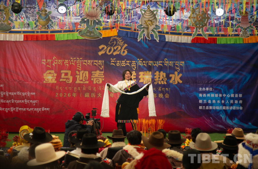 中國西藏網(wǎng)訊 1月16日至17日,在2026年藏歷火馬新年來臨之際,一場(chǎng)主題為“金馬迎春·祥瑞熱水”的藏歷新年晚會(huì)在青海省海西蒙古族藏族自治州都蘭縣熱水鄉(xiāng)賽什堂村舉辦并完成錄制。晚會(huì)由海西州融媒體中心聯(lián)合熱水鄉(xiāng)黨委、政府及都蘭縣賽瓊鍋莊藏族諺語協(xié)會(huì)共同打造,所有節(jié)目均取材于當(dāng)?shù)剞r(nóng)牧民生活與藝術(shù)傳統(tǒng),生動(dòng)展現(xiàn)了新時(shí)代農(nóng)牧民的精神風(fēng)貌與文化自信。