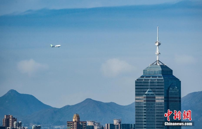 圖為C919翱翔香港上空資料圖。中新網(wǎng)記者 侯宇 攝