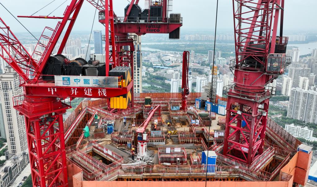 4月12日,工人在??谑泻D现行捻椖渴┕ぷ鳂I(yè)(無人機照片)。新華社記者 楊冠宇 攝