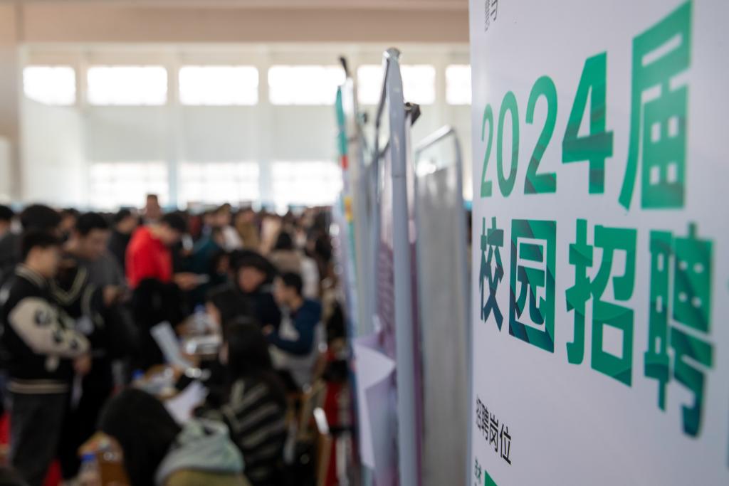 4月9日,求職者在聯(lián)合招聘會現(xiàn)場與招聘方代表溝通交流。新華社記者 張濤 攝