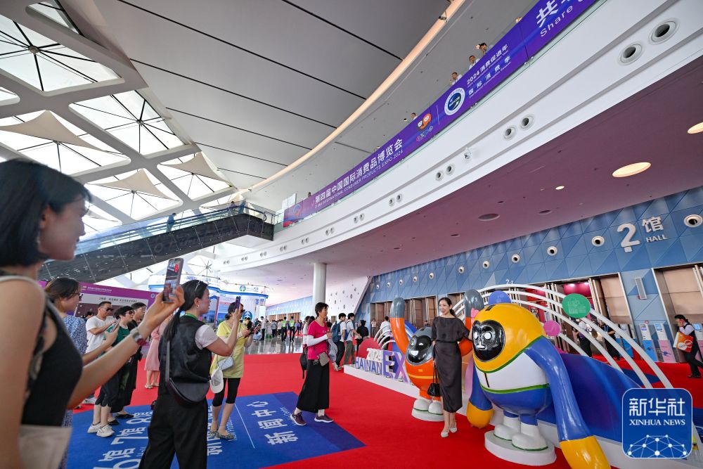 觀眾在第四屆消博會現(xiàn)場拍照留念。新華社記者王楚天 攝