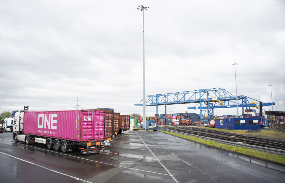 位于萊茵河西岸的杜伊斯堡港DIT貨運(yùn)場(chǎng)站,是中歐班列的主要操作場(chǎng)站。目前,每周約有60列中歐班列抵達(dá)這里。數(shù)臺(tái)幾十米高的起重機(jī)和各類裝卸設(shè)備緊密配合作業(yè),將卸下的集裝箱碼放整齊,形成一座座連綿不絕的“小山”。隨后,這些跋涉萬里、種類豐富的中國貨品通過水路、鐵路或公路運(yùn)輸,送往周邊城市和其他歐洲國家。