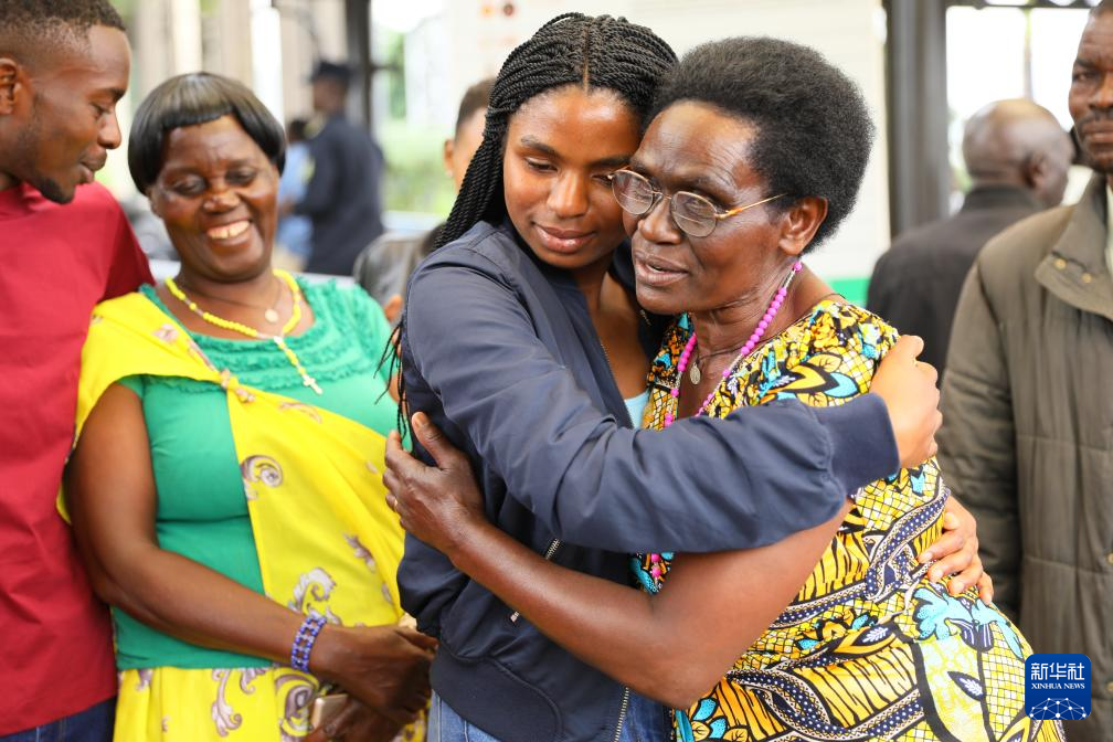 4月23日,在盧旺達(dá)首都基加利國(guó)際機(jī)場(chǎng),一名來自盧旺達(dá)北方省穆桑澤職業(yè)技術(shù)學(xué)院的學(xué)生與母親擁抱告別。新華社記者 吉莉 攝