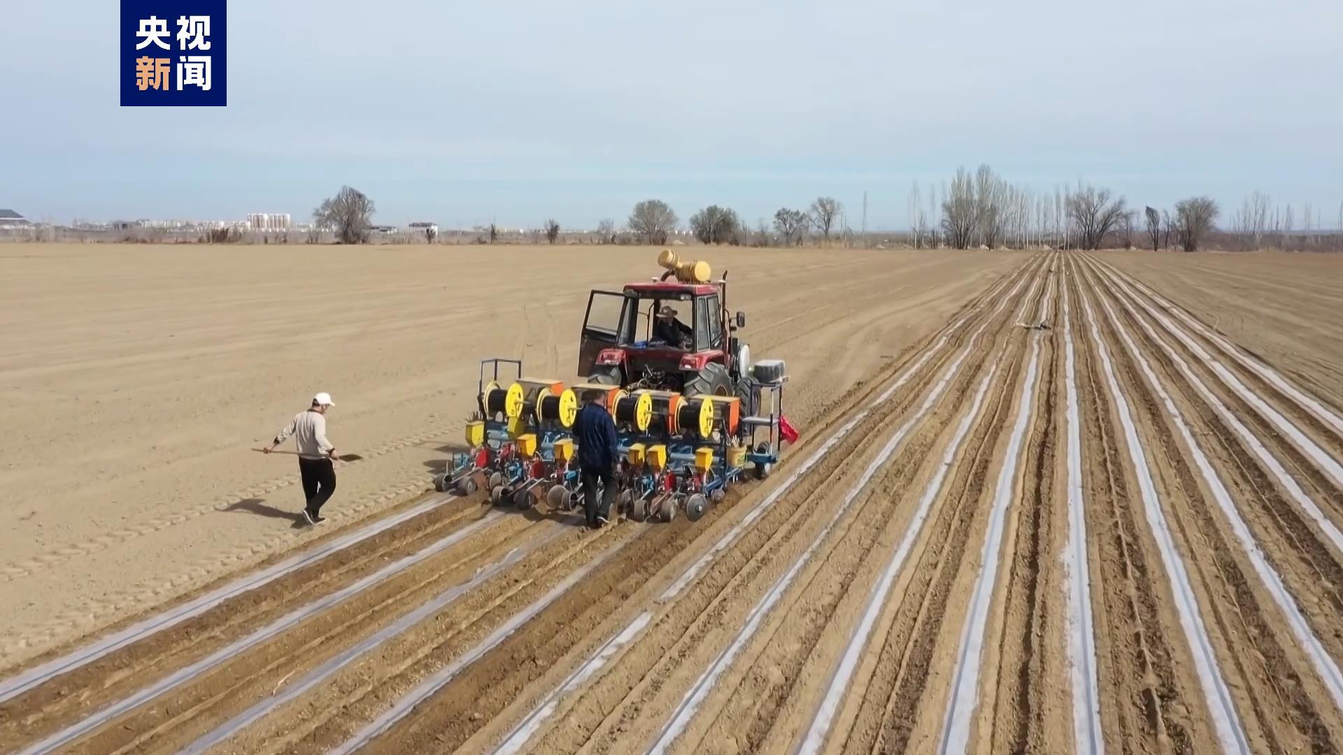 在新疆昌吉州,當?shù)亟衲瓴捎?.4米超寬膜播種方式和一膜十二行播種新技術,實現(xiàn)了膜眼不易錯位、播種深度可控,膜內(nèi)增溫0.8攝氏度左右,有效地抑制早春低溫天氣,保證出苗率。