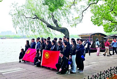 在浙江嘉興南湖參觀的黨員干部重溫黨的歷史,接受紅色文化的熏陶。新華社發(fā)