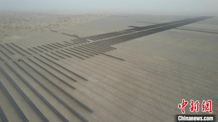 截至3月底,中電建25萬千瓦光伏項(xiàng)目已完成光伏板基樁的建設(shè)和第一期5萬余塊光伏板的安裝。今年6月,這里將建成一個(gè)占地約7000畝、年發(fā)電量4.14億千瓦時(shí)的光伏基地,并配套建設(shè)一座220千伏升壓站,通過“光伏+治沙”筑牢生態(tài)防線。