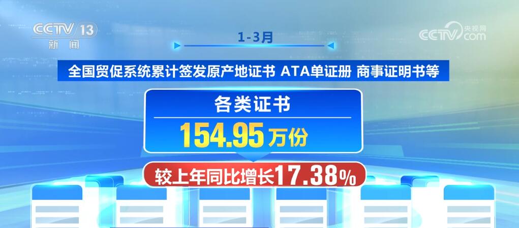 1—3月,全國(guó)貿(mào)促系統(tǒng)累計(jì)簽發(fā)原產(chǎn)地證書(shū)、ATA單證冊(cè)、商事證明書(shū)等各類(lèi)證書(shū)154.95萬(wàn)份,較上年同比增長(zhǎng)17.38%。其中,全國(guó)貿(mào)促系統(tǒng)非優(yōu)惠原產(chǎn)地證書(shū)簽證金額共計(jì)849.31億美元,同比增長(zhǎng)2.47%;全國(guó)貿(mào)促系統(tǒng)優(yōu)惠原產(chǎn)地證書(shū)簽證金額共計(jì)161.21億美元,同比增長(zhǎng)4.73%。