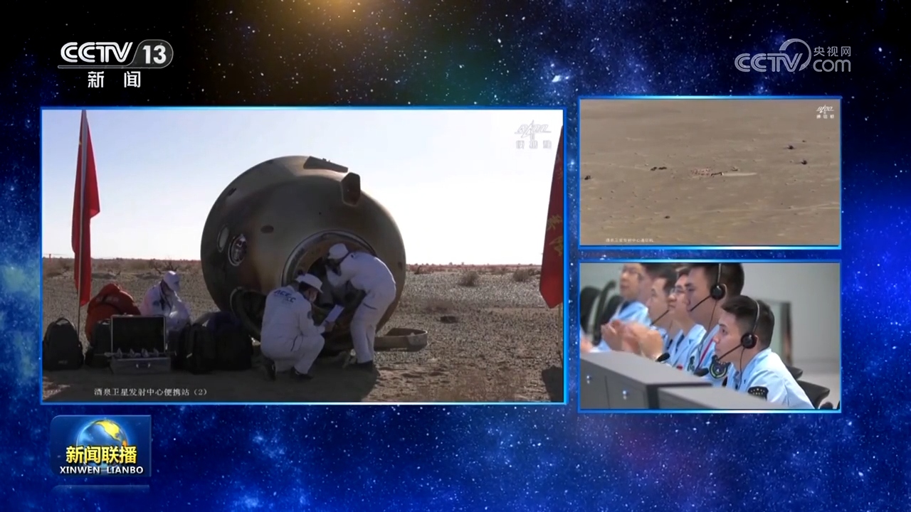 16時56分,北京航天飛行控制中心通過地面測控站發(fā)出返回指令,神舟十七號載人飛船軌道艙與返回艙成功分離。之后,飛船返回制動發(fā)動機點火,推進艙與返回艙分離,返回艙成功著陸,擔負搜救回收任務的搜救分隊及時發(fā)現(xiàn)目標并抵達著陸現(xiàn)場。返回艙艙門打開后,醫(yī)監(jiān)醫(yī)保人員確認航天員身體健康。