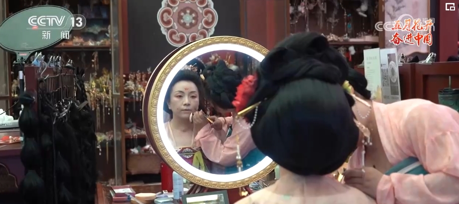 在陜西西安,有這樣一位年輕人,她仿佛擁有一種復(fù)刻舊時(shí)光的魔力。敷粉、畫(huà)眉、點(diǎn)唇,穿上漢服、戴上發(fā)飾,不到1個(gè)小時(shí),一個(gè)現(xiàn)代的女孩就穿越回了漢唐?!?0后”漢服妝造師胡芯銀,讓今人和古人在裝束上相逢。