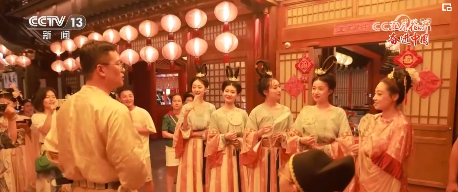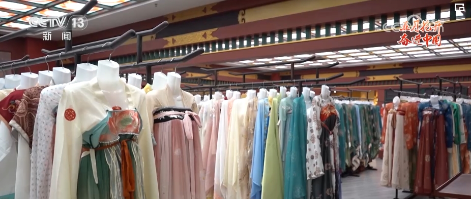 看起來(lái)對(duì)漢服造型頗有研究的胡芯銀今年只有24歲。胡芯銀介紹,也就是在這幾年,隨著大家對(duì)傳統(tǒng)文化的喜愛(ài),西安的漢服館如雨后春筍般涌現(xiàn)。感受到“漢服熱”的胡芯銀在2022年初,辭去了原先婚禮跟妝的工作,應(yīng)聘到了這家位于長(zhǎng)安十二時(shí)辰主題街區(qū)附近的漢服館,擔(dān)任漢服造型師。