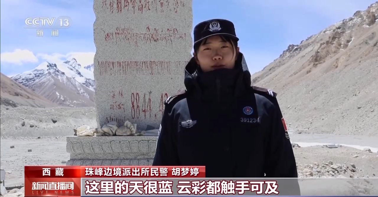 珠峰邊境派出所民警 胡夢(mèng)婷:這里的天很藍(lán),云彩都觸手可及。珠穆朗瑪峰,世界最高峰,對(duì)于我來(lái)說(shuō)不再是課本上那遙不可及的存在,而是我已經(jīng)抵達(dá)并駐守的地方。