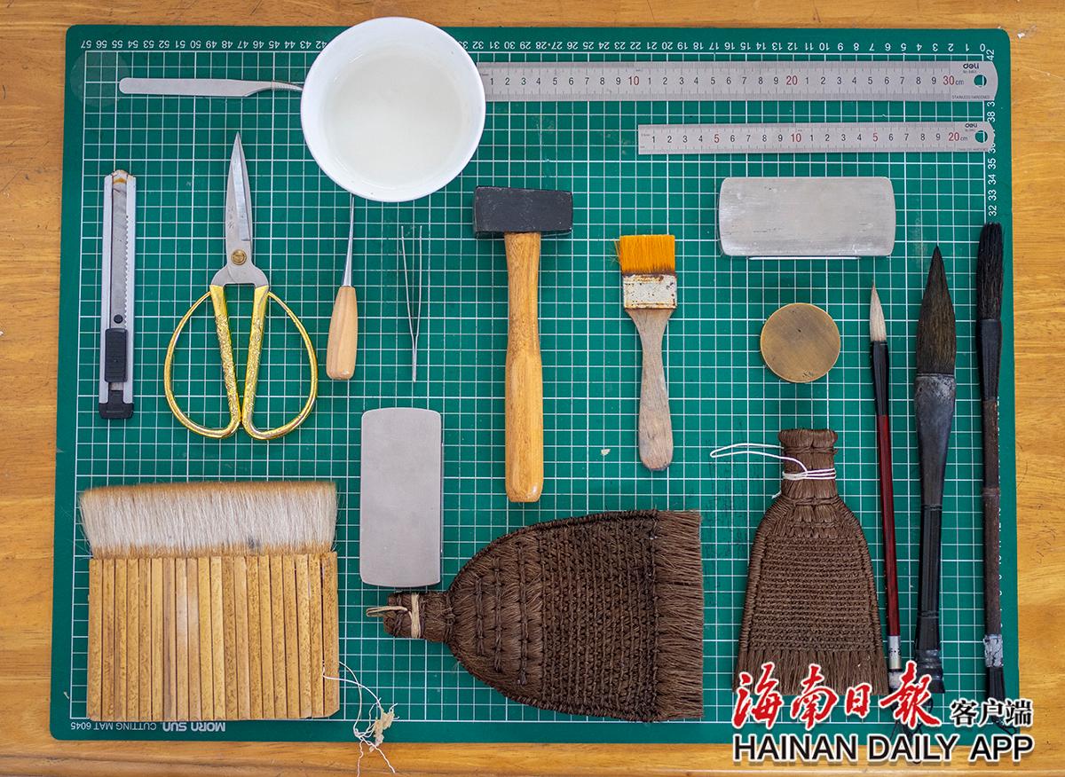 古籍修復(fù)師黃文鋒的部分工具。海南日報記者袁琛 攝