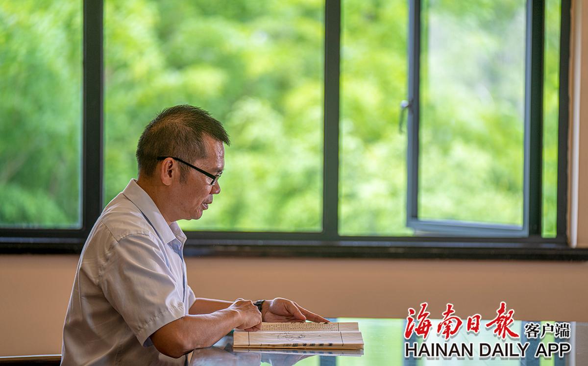 古籍修復(fù)師黃文鋒在閱讀古籍。海南日報記者袁琛 攝
