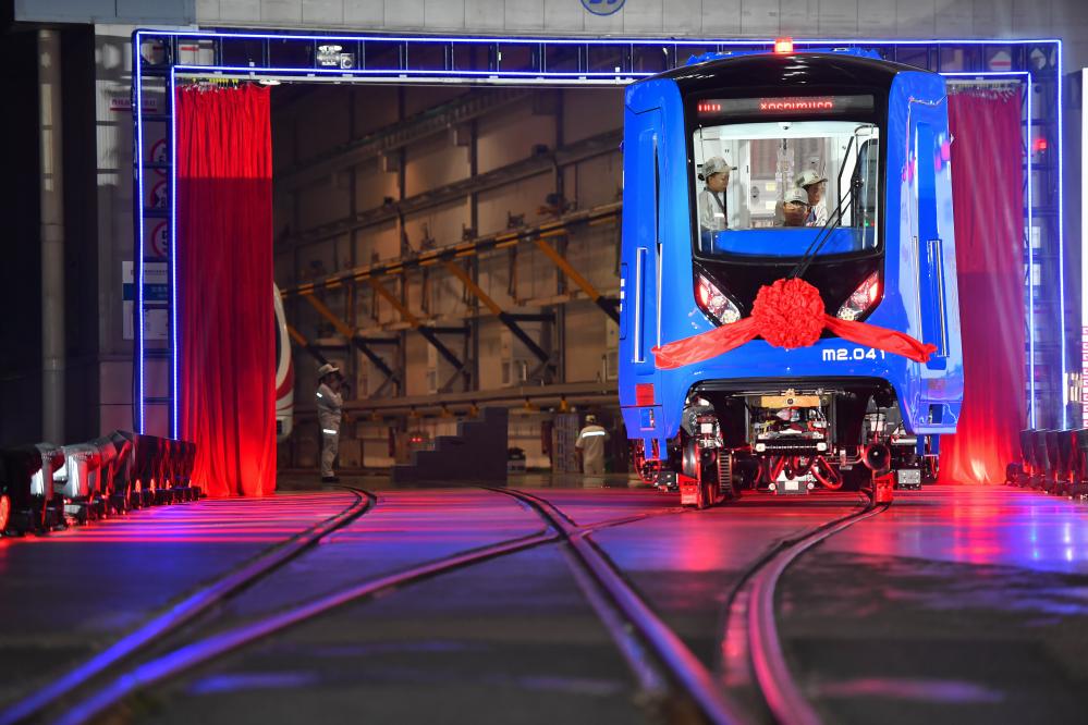 中車(chē)株機(jī)公司工作人員在中國(guó)中車(chē)出口墨西哥城輕軌列車(chē)首列車(chē)內(nèi)進(jìn)行巡檢(2023年9月9日攝)。新華社記者陳澤國(guó)攝