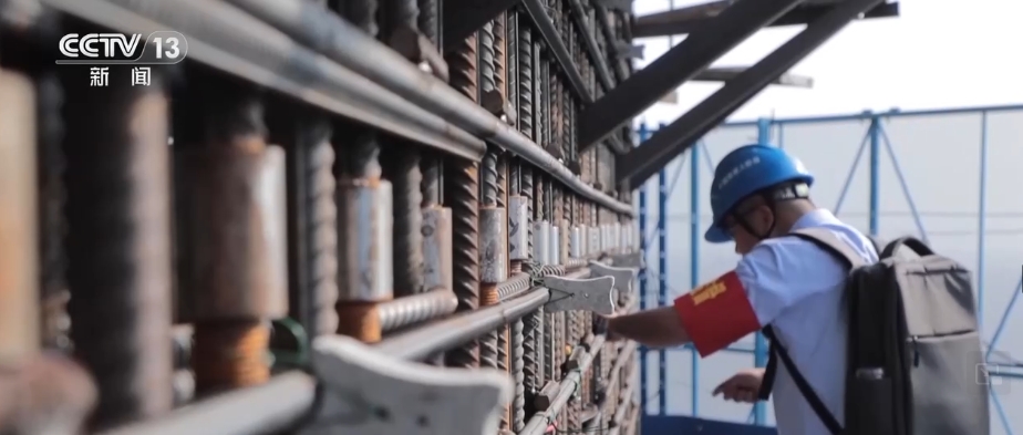 黃沖是這支年輕團隊的主力隊員?,F(xiàn)場,他正在檢查墊塊綁扎和鋼筋焊接情況,一旦出現(xiàn)墊塊下垂或者偏位,就會導致后續(xù)鋼筋保護層控制不到位。