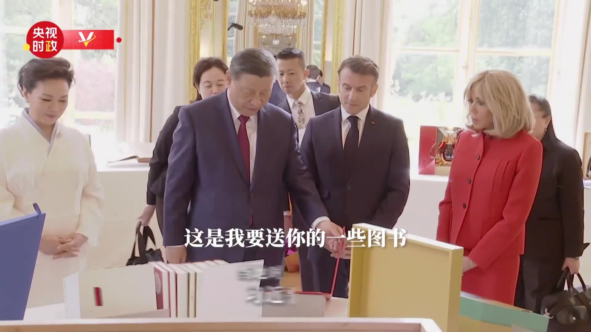 “這是我要送你的一些圖書(shū),都是中國(guó)翻譯的法國(guó)小說(shuō),中文的法國(guó)小說(shuō)?!绷?xí)近平主席走到一排書(shū)籍面前,微笑著說(shuō)。