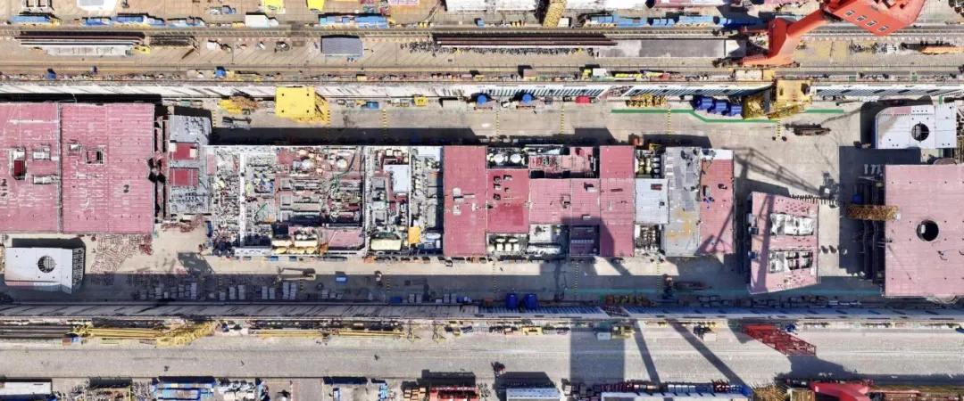 俯瞰第二艘國產(chǎn)大型郵輪搭載總裝現(xiàn)場。陸佳駿 攝