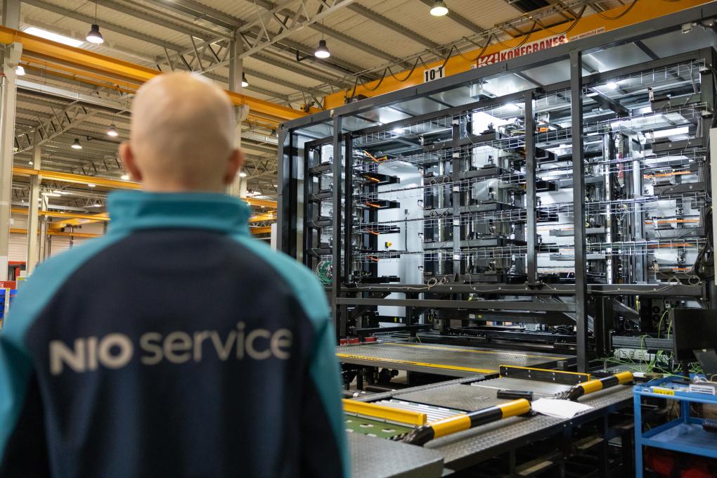 1月26日,在匈牙利比奧托爾巴吉,一名工人在蔚來(lái)能源歐洲工廠(chǎng)工作。新華社發(fā)(弗爾季·奧蒂洛攝)