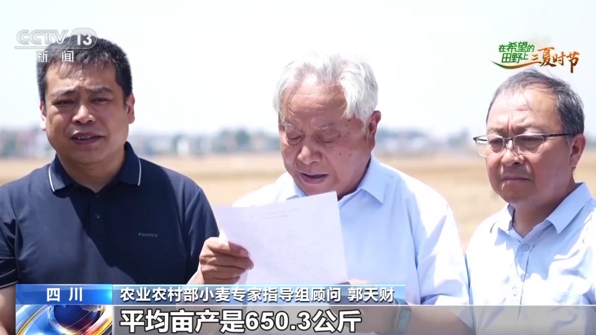 農(nóng)業(yè)農(nóng)村部小麥專家指導(dǎo)組顧問 郭天財:我們按照加權(quán)平均,平均畝產(chǎn)是650.3公斤,應(yīng)該說創(chuàng)造了四川省百畝連片的最高紀(jì)錄。