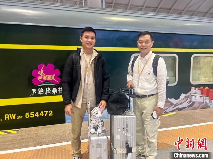 圖為陳瑞生(右)與朋友在旅游專列前合影。李江寧 攝