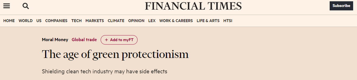 《金融時(shí)報(bào)》網(wǎng)站17日刊文稱,美國的“綠色”保護(hù)主義措施將不可避免地?cái)_亂貿(mào)易,不利于美國國內(nèi)制造商提高產(chǎn)能。對(duì)于應(yīng)對(duì)氣候變化而言,此舉或阻礙全球能源綠色轉(zhuǎn)型。