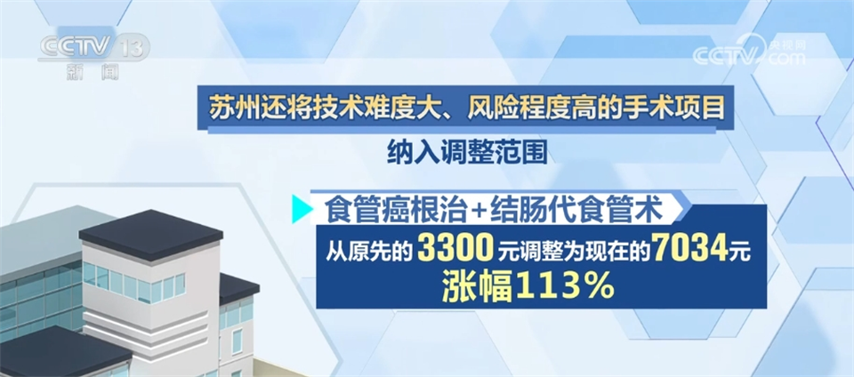 除了推進醫(yī)療機構(gòu)分級定價,蘇州市醫(yī)療服務(wù)價格改革對一些歷史價格長期偏低,不能體現(xiàn)技術(shù)勞務(wù)價值的項目進行調(diào)整。如骨髓活檢術(shù)的醫(yī)療服務(wù)價格由過去的65元調(diào)整為124元,漲幅91%;斷指再植術(shù)由過去的1800元調(diào)整為3275元,漲幅82%。此外,蘇州還將技術(shù)難度大、風(fēng)險程度高的手術(shù)項目納入調(diào)整范圍,調(diào)整的手術(shù)項目占比約60%,并對四級手術(shù)優(yōu)先調(diào)整,共調(diào)整四級手術(shù)項目110項,占比約13%。如食管癌根治+結(jié)腸代食管術(shù),從原先的3300元調(diào)整為現(xiàn)在的7034元,漲幅113%。調(diào)整后,醫(yī)保仍按甲類項目全額報銷,上漲費用全部由醫(yī)保基金支付,患者的個人負擔(dān)沒有增加多少。