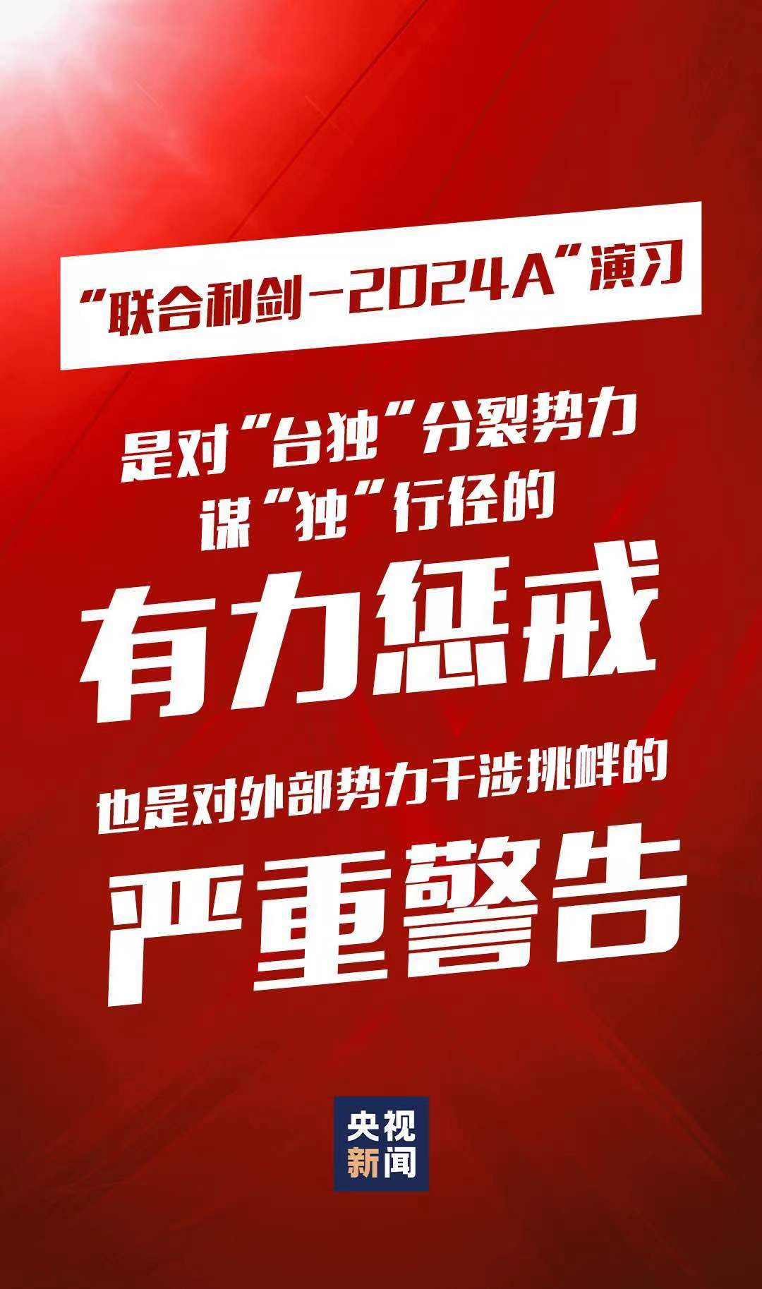 5月23日至24日,中國人民解放軍東部戰(zhàn)區(qū)組織戰(zhàn)區(qū)陸軍、海軍、空軍、火箭軍等兵力,位臺(tái)島周邊開展“聯(lián)合利劍-2024A”演習(xí),重點(diǎn)演練聯(lián)合??諔?zhàn)備警巡、聯(lián)合奪取戰(zhàn)場綜合控制權(quán)、聯(lián)合精打要害目標(biāo)等科目,艦機(jī)抵近臺(tái)島周邊戰(zhàn)巡,島鏈內(nèi)外一體聯(lián)動(dòng),檢驗(yàn)戰(zhàn)區(qū)部隊(duì)聯(lián)合作戰(zhàn)實(shí)戰(zhàn)能力。這是中國維護(hù)國家主權(quán)和領(lǐng)土完整的正義之舉,也是對(duì)“臺(tái)獨(dú)”分裂勢力謀“獨(dú)”行徑的有力懲戒,對(duì)外部勢力干涉挑釁的嚴(yán)重警告。
