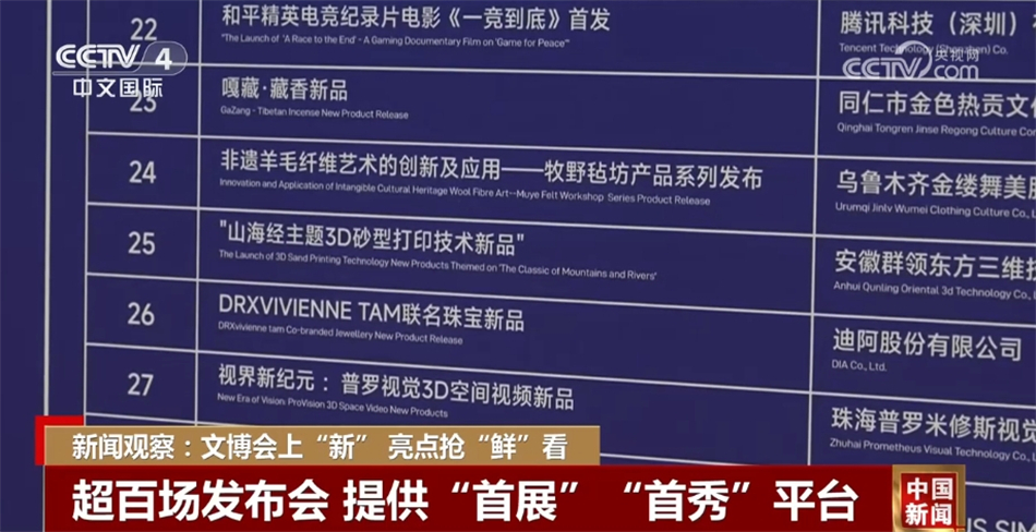 首次設(shè)立國際文化貿(mào)易展,邀請西班牙貿(mào)易協(xié)會、尼泊爾工商聯(lián)合會等國外貿(mào)易機構(gòu)參展,一站式包攬各地文化產(chǎn)業(yè)精品;在影視·出版·版權(quán)·游戲電競展,首次亮相的“城市文化合伙人”主題展呈現(xiàn)“文化+交易產(chǎn)業(yè)融合新產(chǎn)品”,傳播城市優(yōu)秀文化。據(jù)悉,今年的文博會將舉辦超100場創(chuàng)新項目及新品發(fā)布會和超20場招商會、推介會等,為國內(nèi)外新產(chǎn)品、新技術(shù)、新業(yè)態(tài)、新服務(wù)的發(fā)布提供“首展”“首發(fā)”“首秀”平臺。