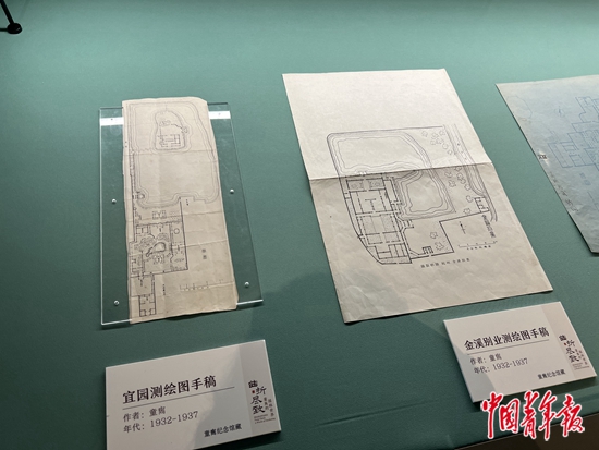 “曲折盡致——童寯?shù)膱@林世界”展覽上展出童寯測(cè)繪圖手稿。