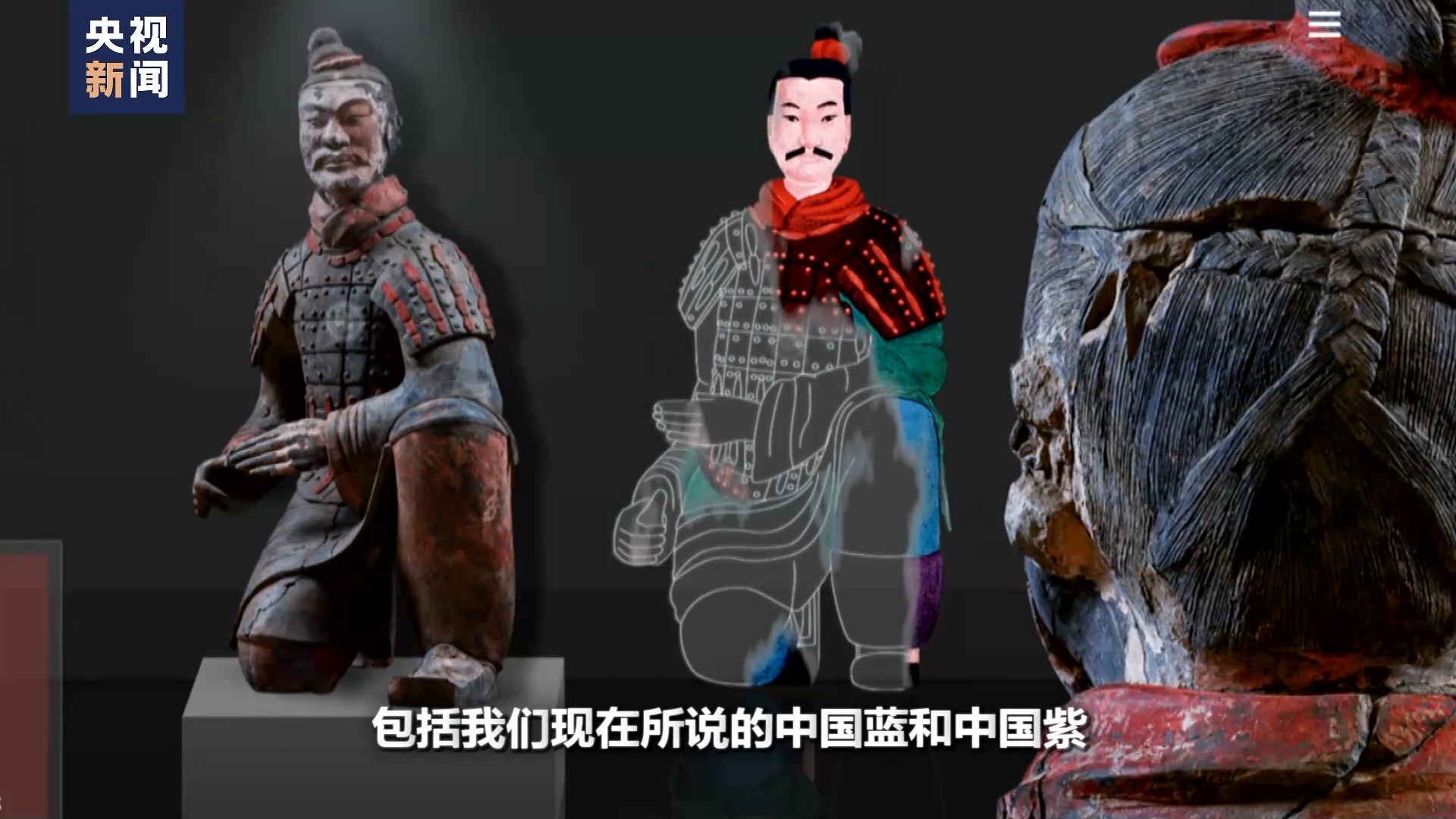秦始皇帝陵博物院文物保護(hù)修復(fù)專(zhuān)家 蘭德省:那么這在秦俑實(shí)際上,目前有八種顏色。紅、黃、綠、藍(lán)、紫、白、黑、粉等等,這就是已經(jīng)定型的八種。但是我們最近也要分析比這個(gè)還要多,包括有一些它是白里透紅的粉色,還有的它就是幾種合成色,包括我們現(xiàn)在所說(shuō)的中國(guó)藍(lán)和中國(guó)紫。