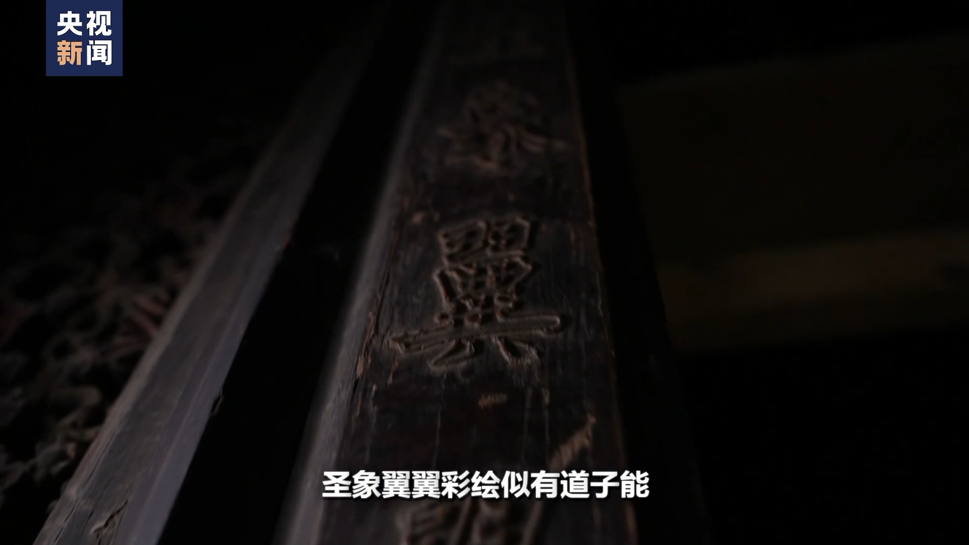 那么剛才提到楹聯(lián)里頭的下楹聯(lián)叫圣象翼翼彩繪似有道子能,它主要說(shuō)這里的油漆彩畫(huà)也是非常精美,就像畫(huà)圣吳道子親自繪畫(huà)的技能一樣的精美。