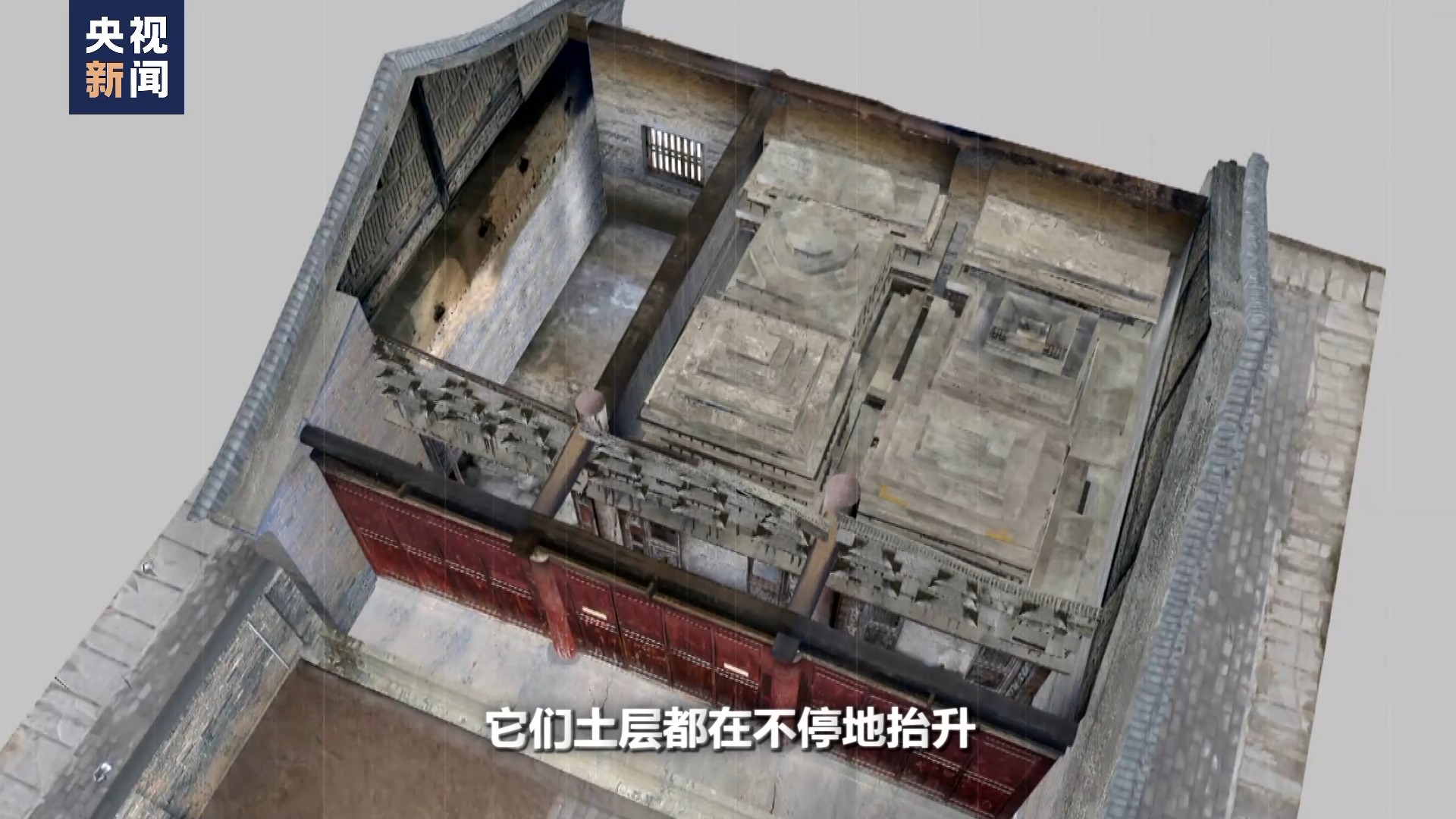 秦始皇帝陵博物院副院長(zhǎng) 周萍:基本上到了塔的塔尖位置,它不是上面還有個(gè)木塔嗎。木塔現(xiàn)在整體的木質(zhì)維修已經(jīng)基本完成了,它在木臺(tái)結(jié)構(gòu)上面貼覆了一層鉛皮,鉛的一些裝置構(gòu)件,隨著鉛往下貼的過(guò)程中,已經(jīng)開(kāi)始落架。所以我們能登到最高位置。