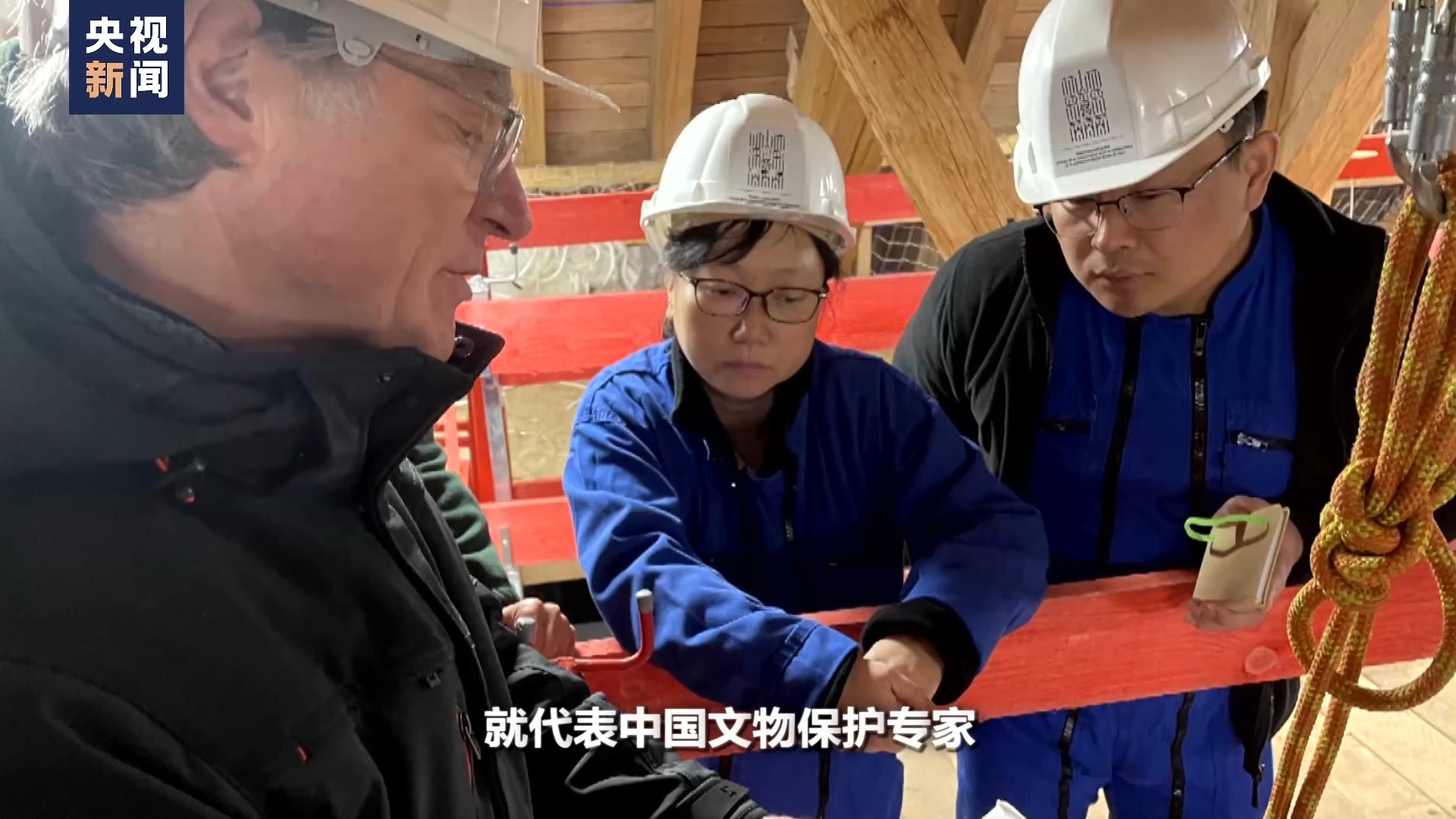 總臺(tái)記者 張誠(chéng):兩位專(zhuān)家是登上了巴黎圣母院什么位置?