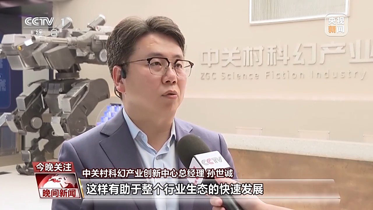 中關(guān)村科幻產(chǎn)業(yè)創(chuàng)新中心總經(jīng)理 孫世誠(chéng):幫助企業(yè)把它的技術(shù)能夠快速地產(chǎn)品化和公共化,有助于整個(gè)行業(yè)生態(tài)的快速發(fā)展,2023年,科幻產(chǎn)業(yè)創(chuàng)新中心的產(chǎn)值大概是六個(gè)億。