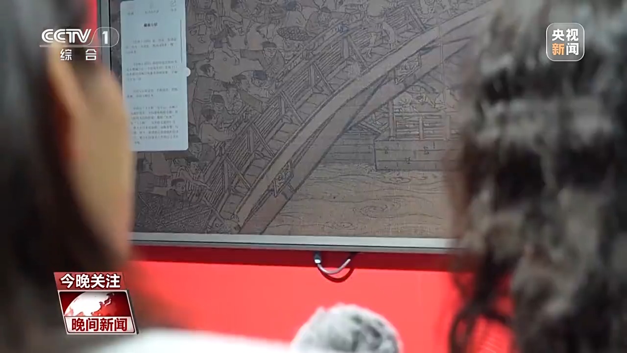第七屆數(shù)字中國(guó)建設(shè)峰會(huì)參展商 翟芮:比如說這幅清明上河圖,采用了超高清的采集,可以把整個(gè)畫作無限放大,比如這個(gè)細(xì)節(jié)是在橋上有兩隊(duì)人馬,他們兩個(gè)起了沖突,互不相讓,周圍這些是看熱鬧的。