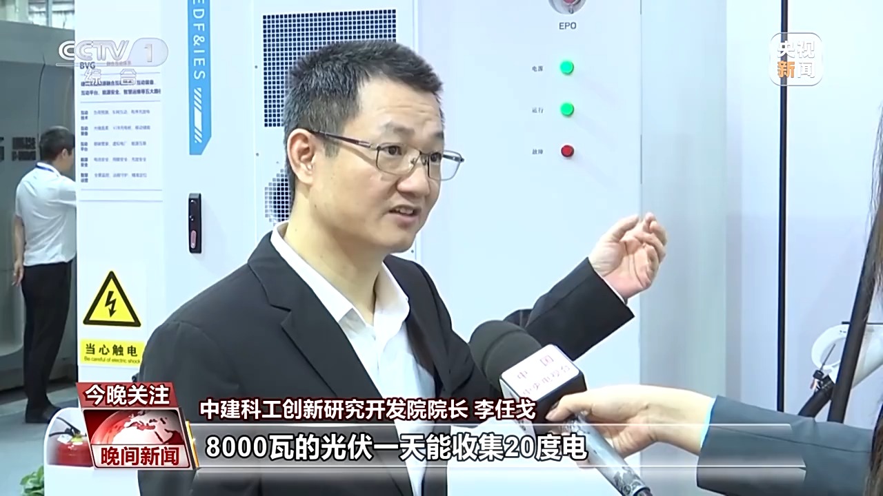 中建科工創(chuàng)新研究開發(fā)院院長(zhǎng) 李任戈:我們屋頂裝了8000瓦的光伏,一天能收集20度的電,我們這輛汽車充滿是100度電,我們反過來放電的時(shí)候,我們這輛汽車能夠供這個(gè)房子一個(gè)星期使用的電量。