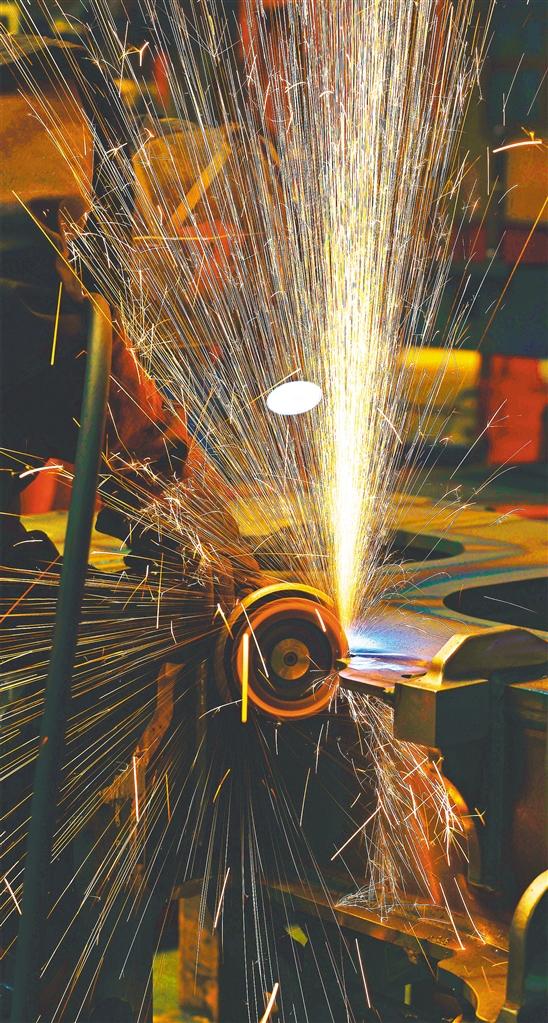 ▼5月28日,中車長客轉(zhuǎn)向架事業(yè)部焊接產(chǎn)線組,員工在進(jìn)行動(dòng)車組構(gòu)架橫梁焊后修磨作業(yè)。