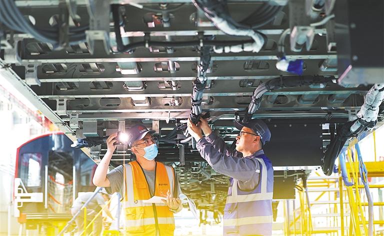 ▲5月28日,中車長客國鐵事業(yè)部制造中心裝配產(chǎn)線組,員工在忙生產(chǎn)。
