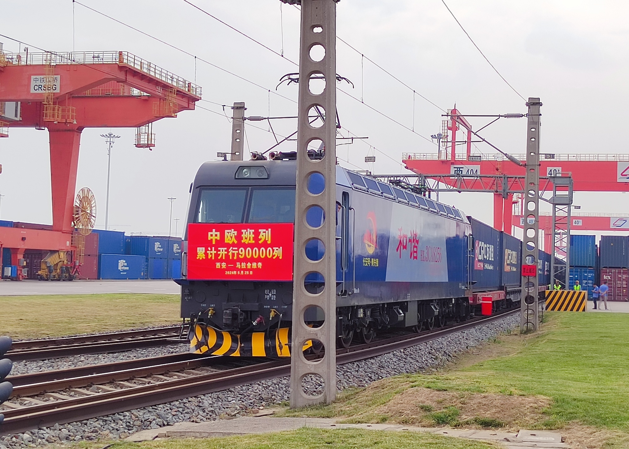 中歐班列,晝夜馳騁在歐亞大陸上,聯(lián)通東西,暢通貿(mào)易,是“絲綢之路經(jīng)濟(jì)帶”上的“鋼鐵駝隊(duì)”。今年5月24日,隨著X8157次中歐班列從西安國際港站發(fā)出,一路向西開去,中歐班列已經(jīng)累計開行9萬列。從2013年開行80列到2016年開行1702列,再到2023年開行1.7萬列,十年來,中歐班列不斷跑出“加速度”,目前已通達(dá)歐洲25個國家223個城市,連接11個亞洲國家一百多個城市,服務(wù)網(wǎng)絡(luò)基本覆蓋歐亞全境,年運(yùn)輸貨值由2016年80億美元增長到2023年的567億美元。
