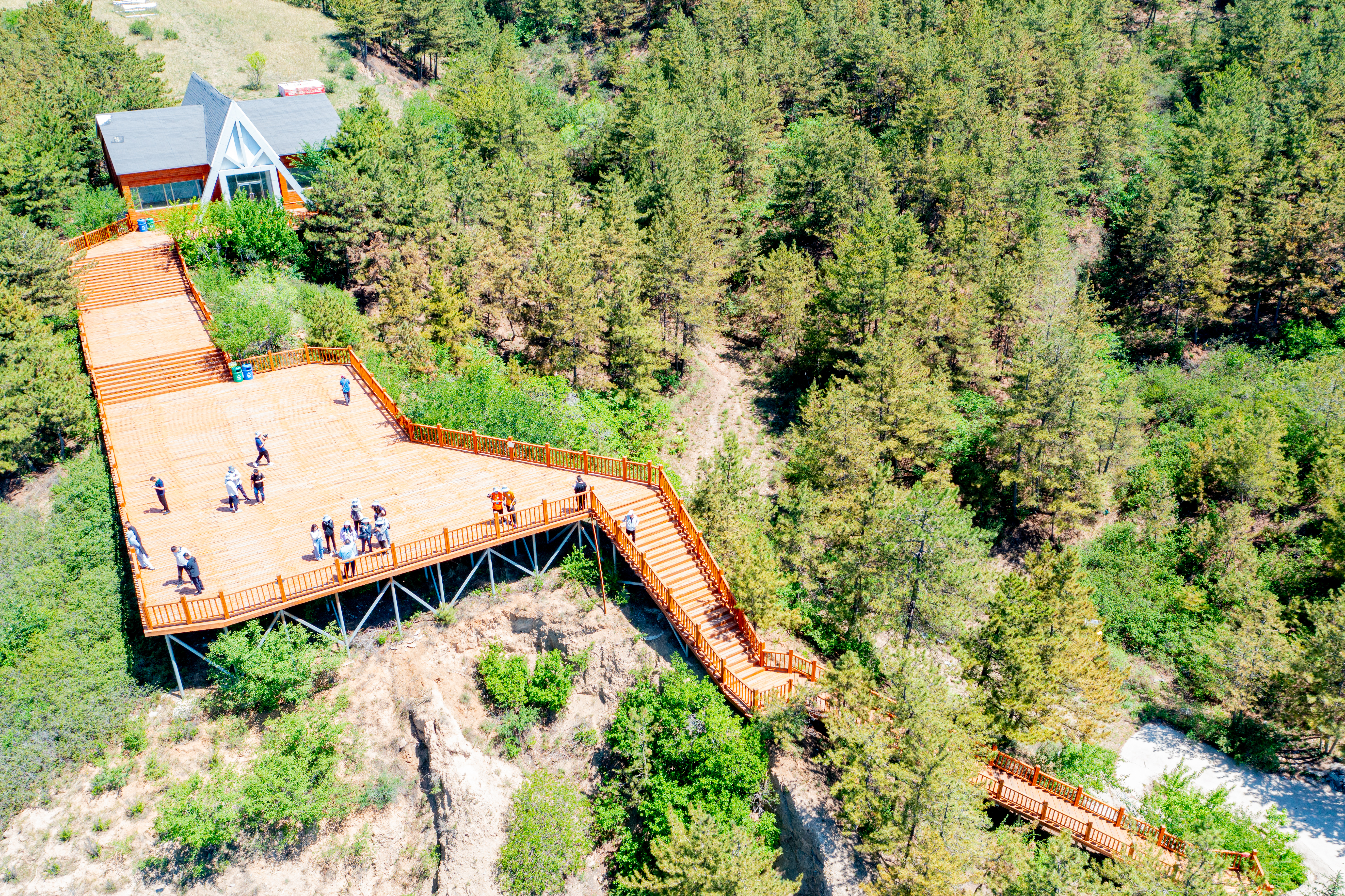 5月27日,澎湃新聞?dòng)浾唠S采訪團(tuán)一行,站到公園的1號(hào)觀景平臺(tái)遠(yuǎn)眺,一望無際的綠色盡收眼底。